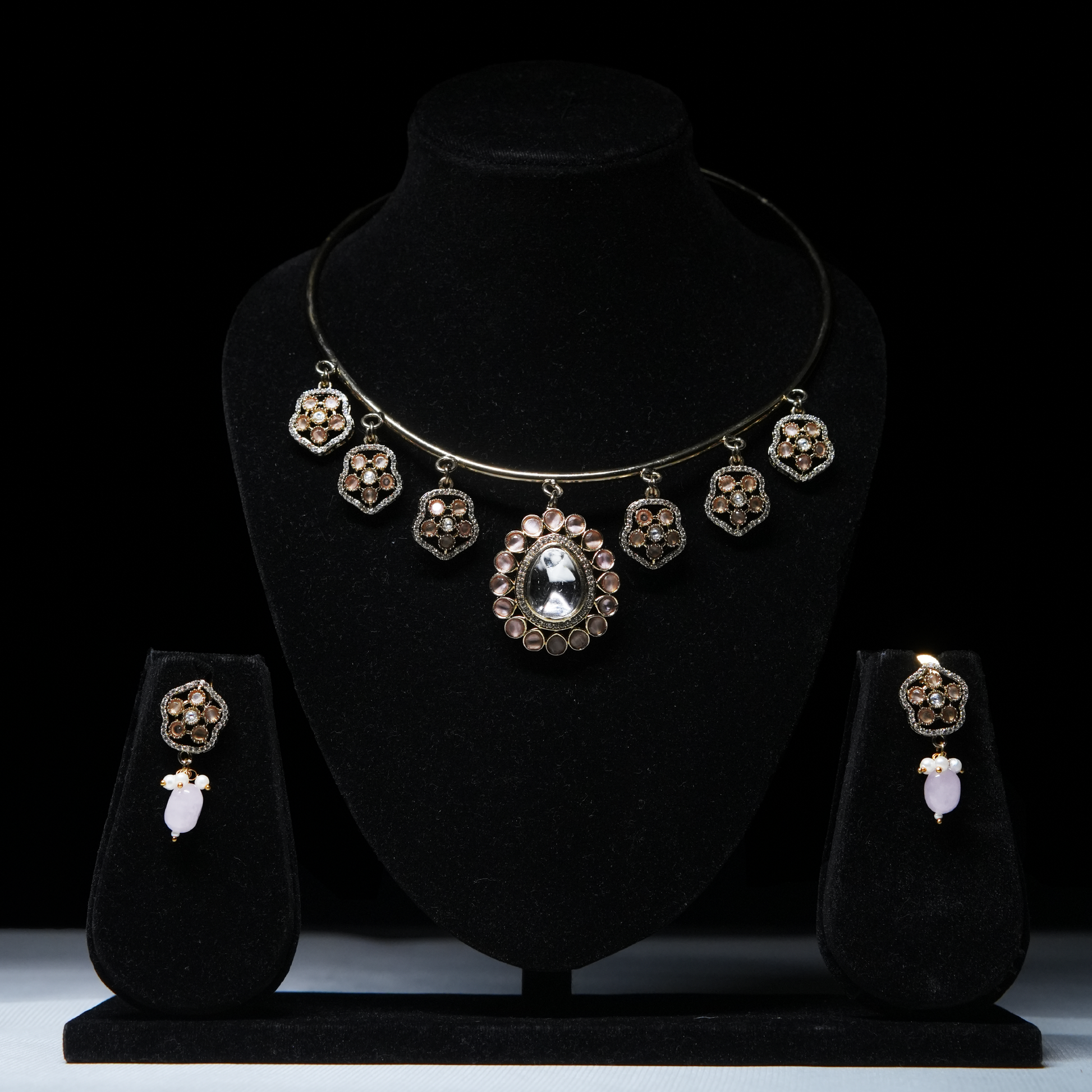 Adorn yourself with the timeless elegance of the Revaaj Vintage Charm Kundan & Pearl Necklace Set. This exquisite choker-style necklace features intricate Kundan work and delicate pearl drops, complemented by matching dangle earrings. Perfect for adding a touch of traditional charm to your ethnic wear or special occasions. Experience the blend of heritage and contemporary design with Revaaj's unique craftsmanship